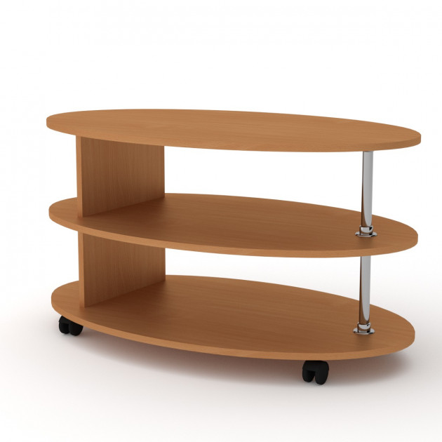 Стол журнальный Соната имеет крайне приятную на вид форму овальной столешницы, хорошо дополняемой внешне аналогичными основанием и промежуточной полкой, что даёт превосходную возможность легко использовать его в современных интерьерах гостиной. Этому способствует также и широкий выбор вариантов цветового исполнения, позволяющий подобрать наиболее подходящий тип