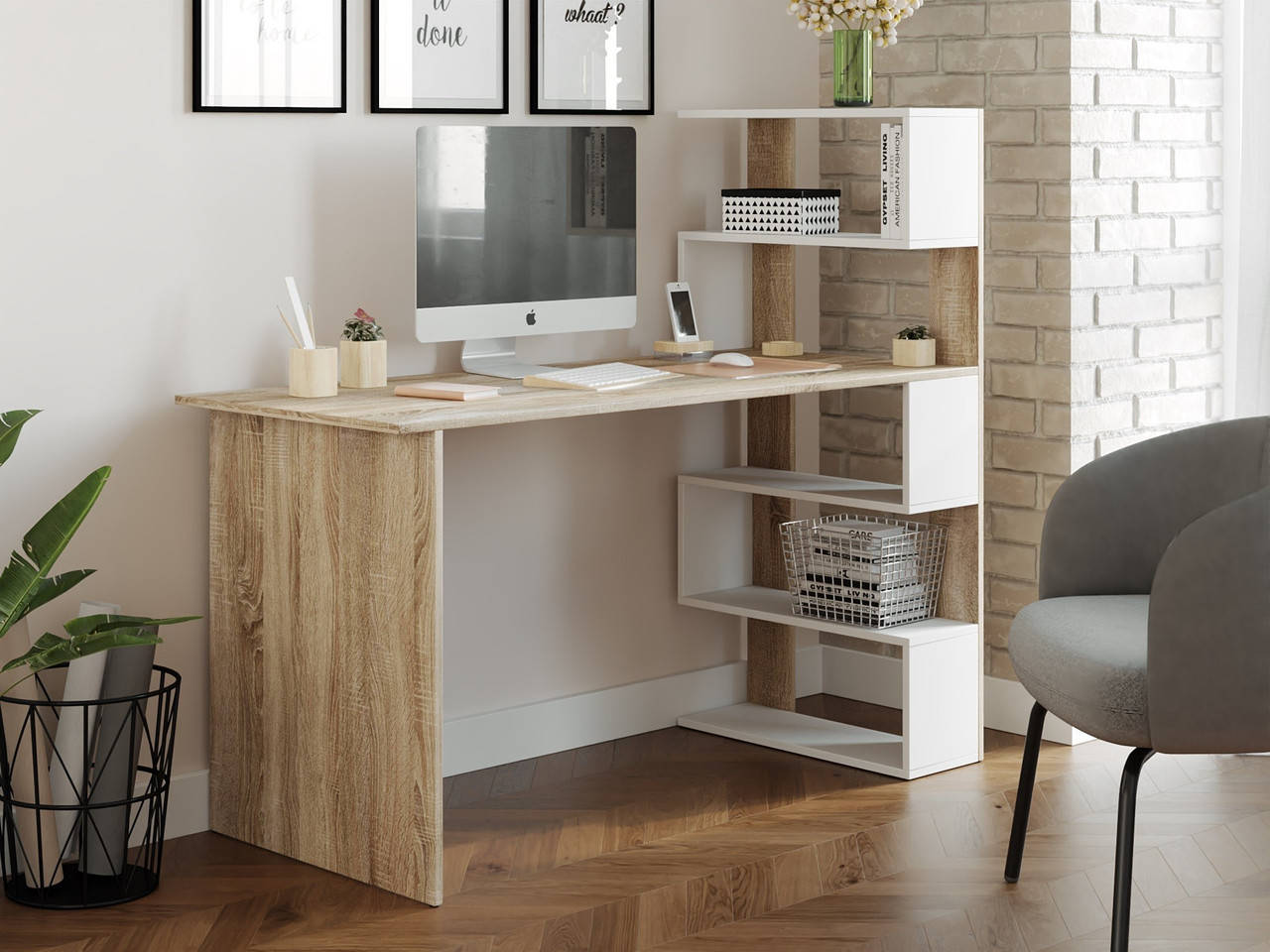 Компьютерный стол Moreli Christer поможет обустроить комфортное место для работы благодаря оптимальным размерам столешницы и удобным секциям для хранения папок, книг или оргтехники. Конструкция с открытыми полками визуально не перегружает обстановку, а лаконичное исполнение подходит для большинства современных интерьеров.