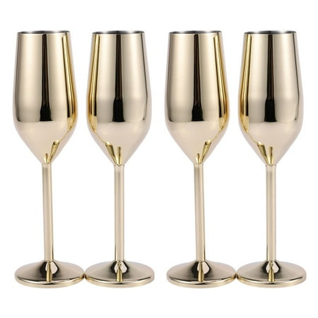 4Pcs/Set Shatterproof Stainless Champagne Glasses Brushed Gold Wedding Toasting Champagne Flutes Drink Cup Party