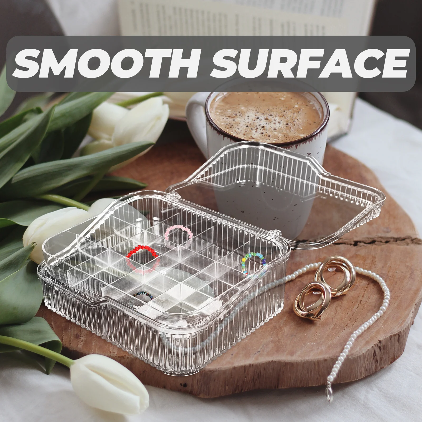 Jewelry Organizer Box 16-Compartment 2-Layer Stackable Storage Case for Rings Earrings Desktop Jewelry Storage