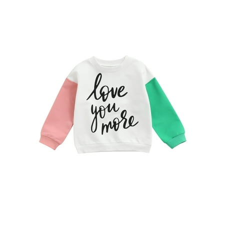 Canrulo Autumn Lovely Kids Girls Boys Sweatshirt Tops Letter Printed Color Patchwork Long Sleeve Pullover Outwears White 12-18 Months