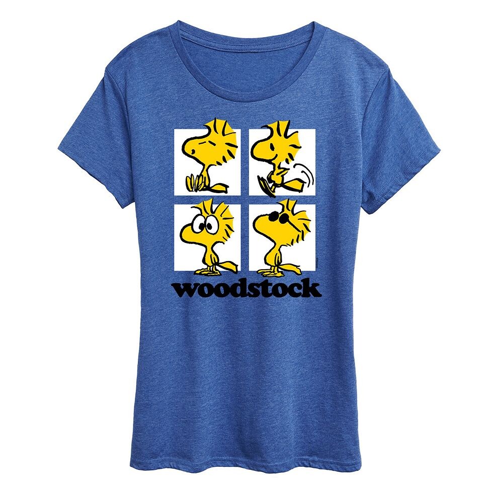 Женская футболка с рисунком Peanuts Woodstock Grid Licensed Character, цвет Heather Royal Blue