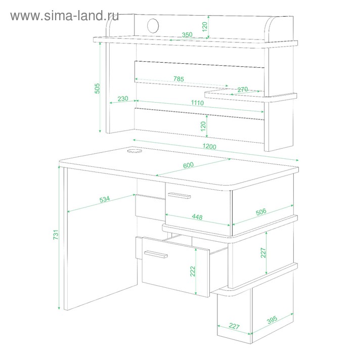Стол с надстройкой, 1200 × 600 × 1410 мм, цвет шамони / карамель