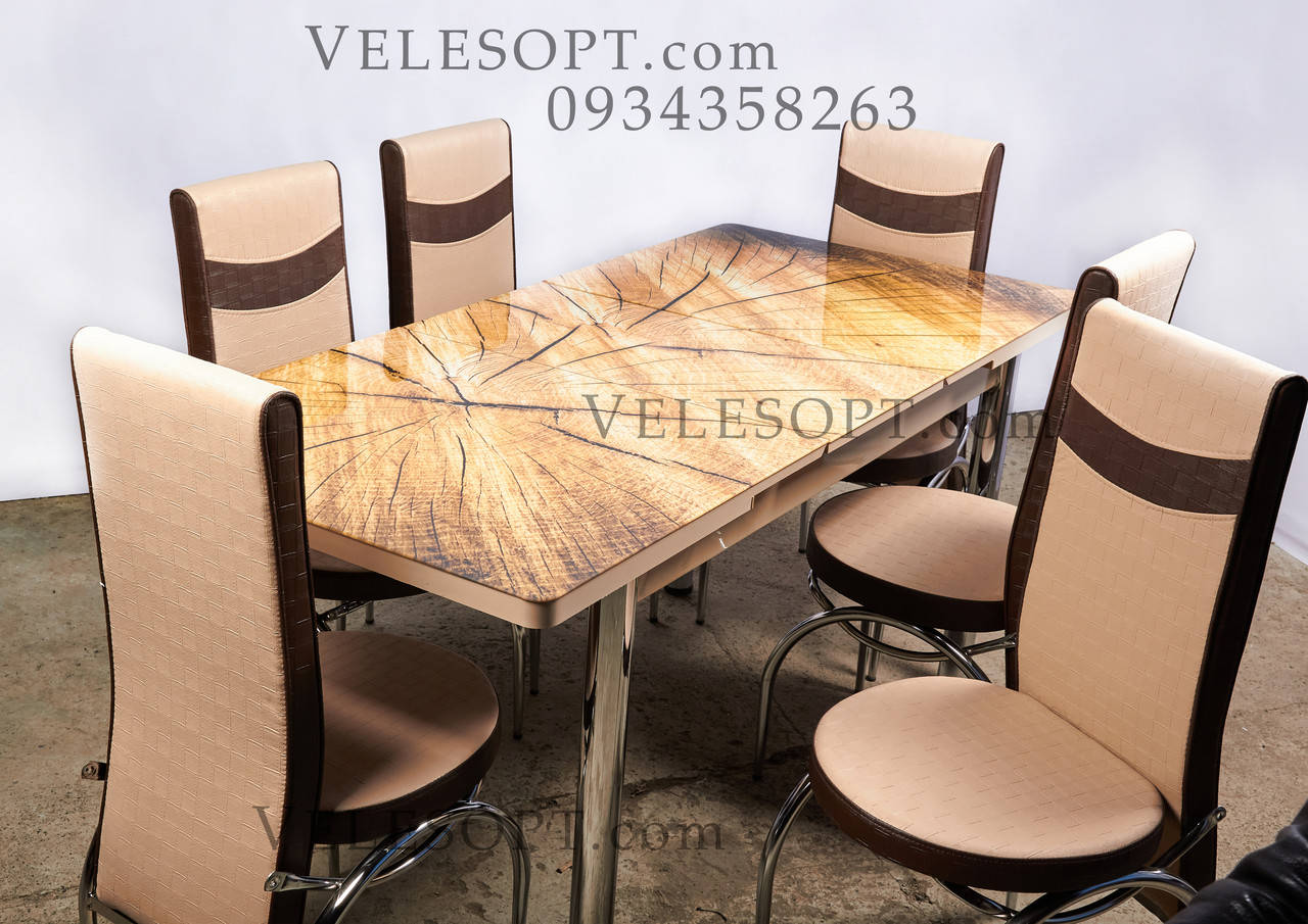 Комплект мебели для кухни с оригинальным декором ! Раскладной стол (130см(+40см) *80см) и 6 стульев!