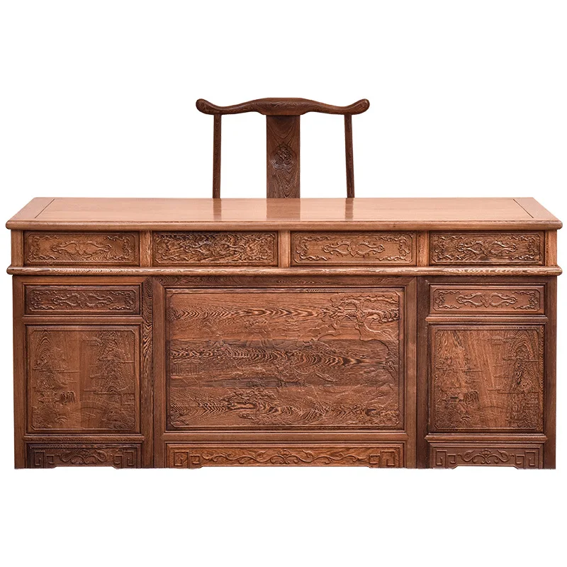 Chicken wing wood boss office desk and chair combination solid wood 2 meters with drawers Chinese desk