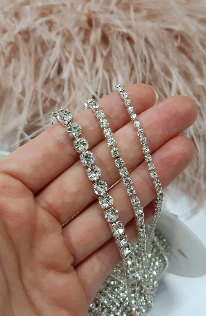 Стразовая цепочка плотная, цепь с густо прикрепленными стразами ( SS10, SS14, SA24)