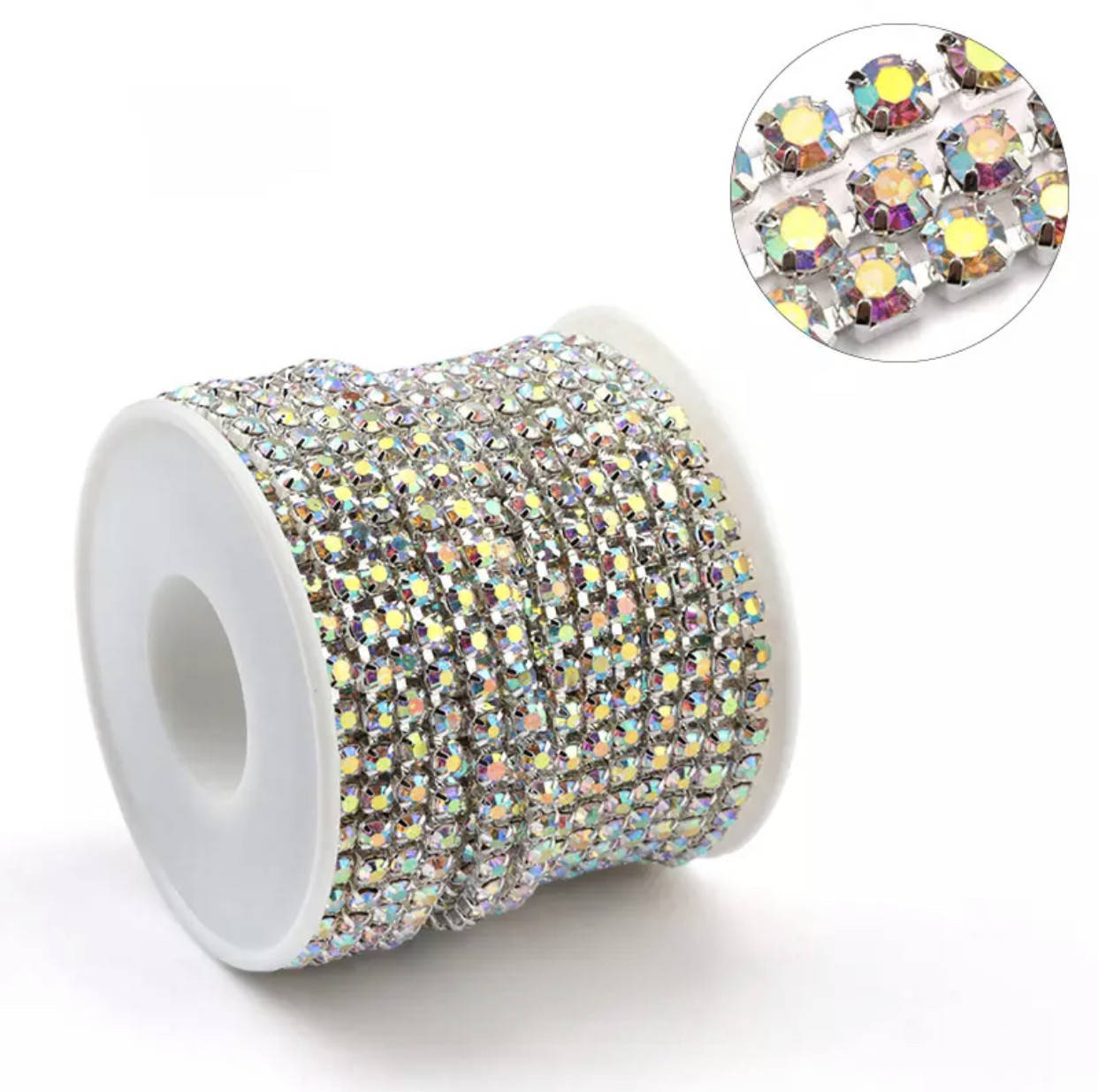 Стразовая цепочка, цвет Сrystal AB, ss6 (2mm), 1м