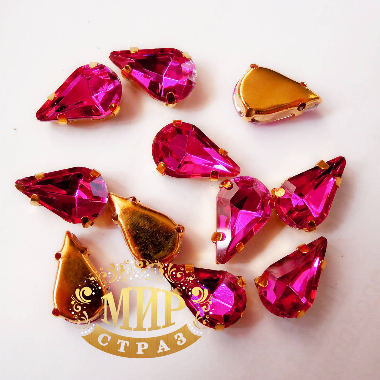 Хрустальные стразы в цапах золотого цвета. Цвет Fuchsia 8x13мм