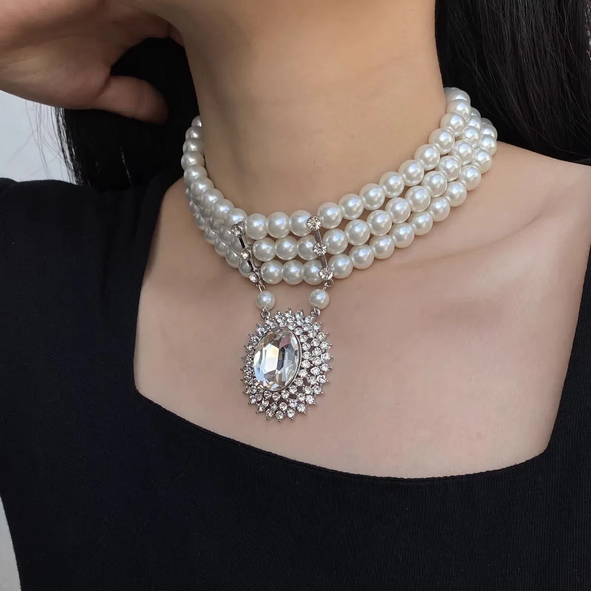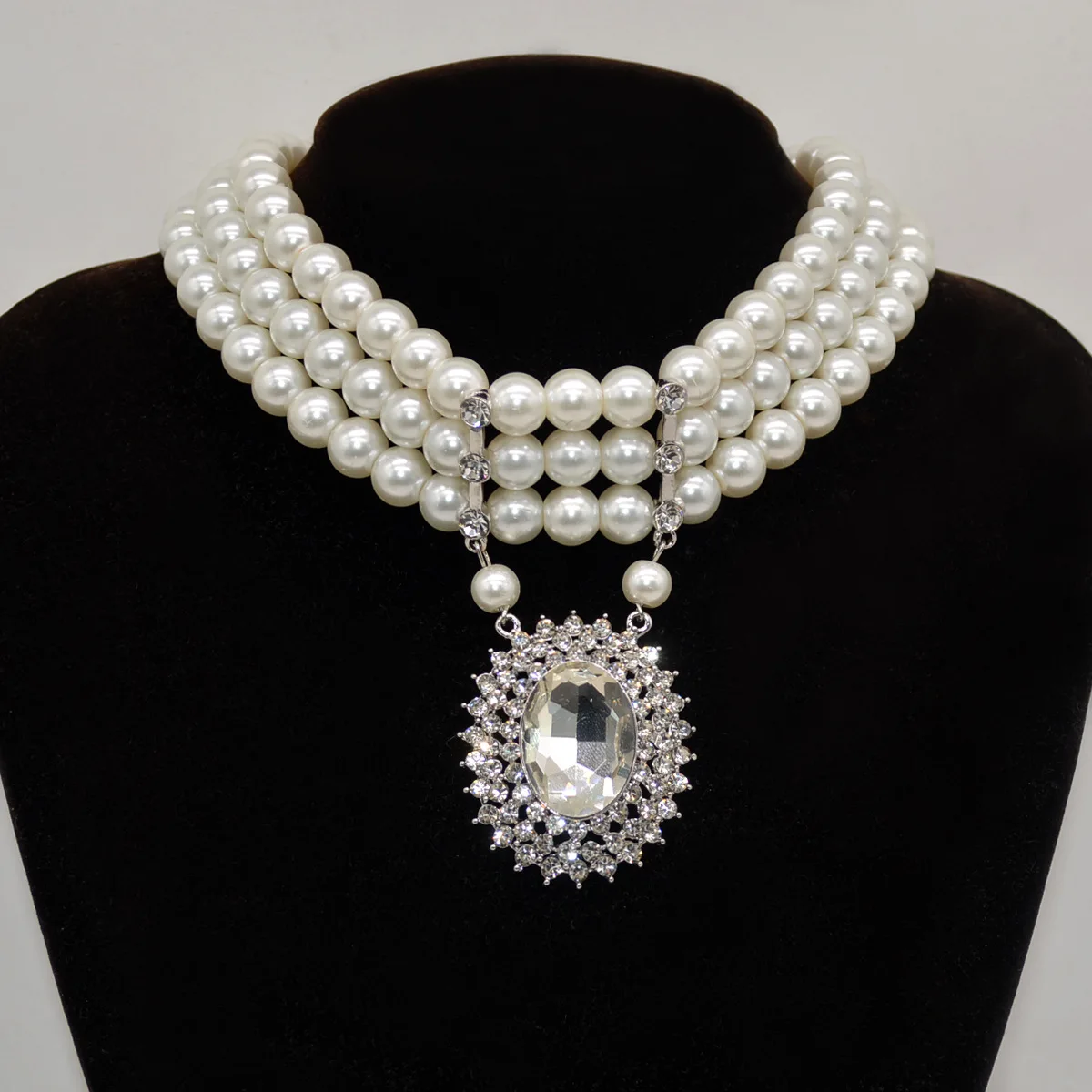 Стразы овальная подвеска, жемчужное ожерелье, Ретро стиль, многослойное ожерелье из бисера, ожерелье с цепочкой