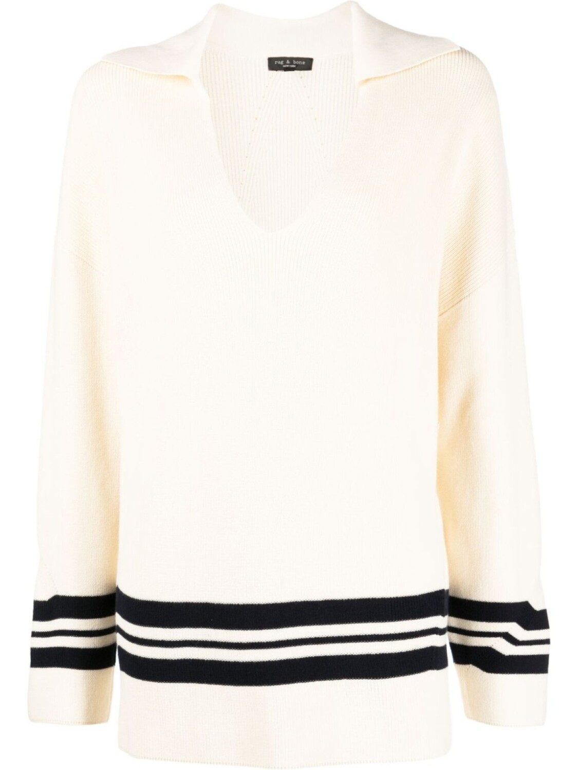 Ladies Vintage Peter Pan Collar Lace Up Long Sleeved Sweater Early Autumn Women's Temperament Commuter Stripe Pullover All-Match