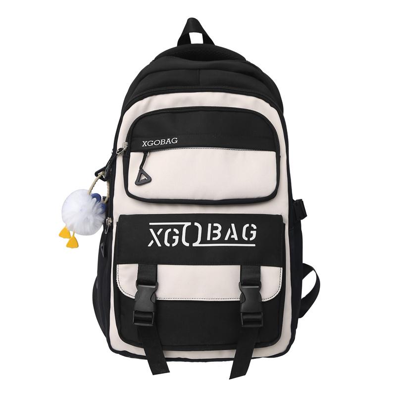 Студенческий школьный рюкзак с цветными блоками, рюкзак в стиле колледжа с буквенным принтом, женский рюкзак большой емкости чёрный