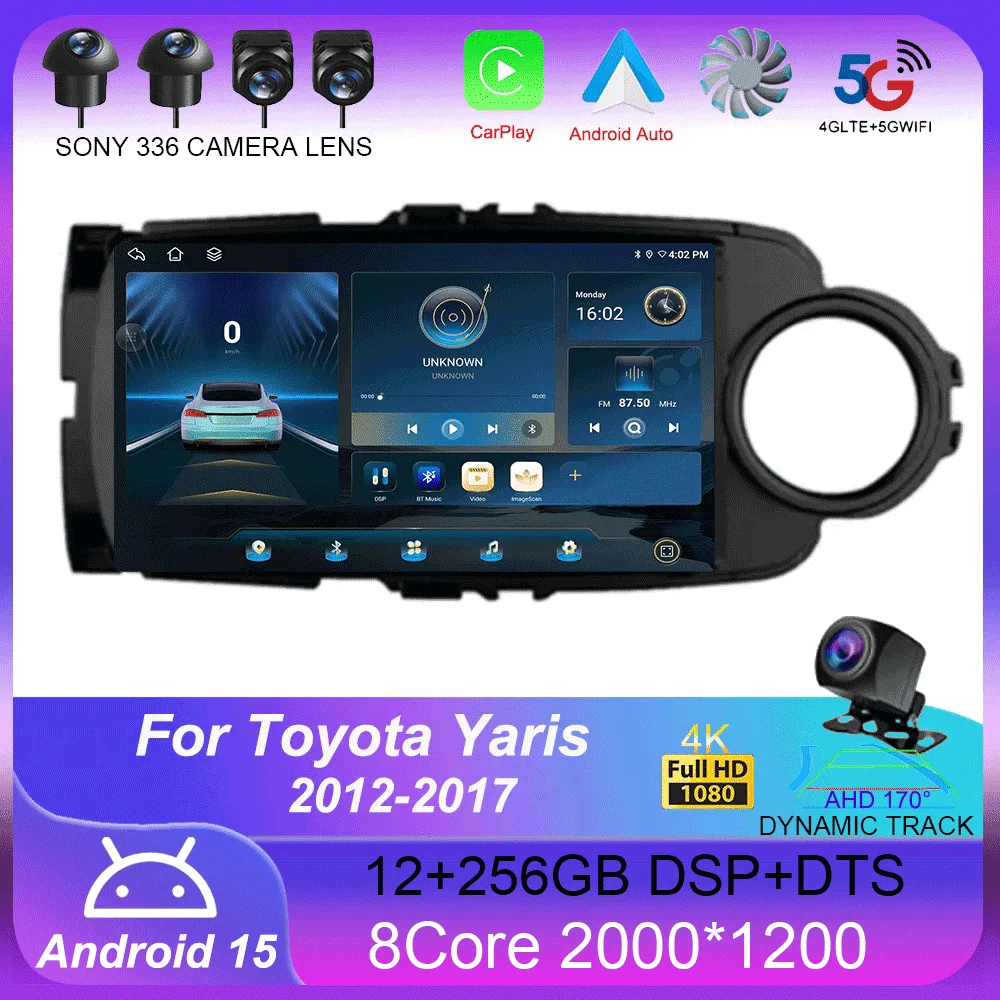 For Toyota Yaris 2012 - 2017 Car Radio Multimedia Players Navigation GPS Stereo Auto Android 15 CarPlay No 2 Din 2din DVD 8+256G