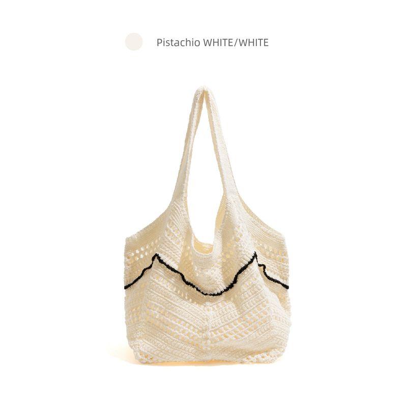 Студия стиля Мори-лук Художественный стиль Плетеная красная сумка Большой вместимости Вязаная ажурная сумка Сумка на плечо Сумка под мышкой Pistachio White