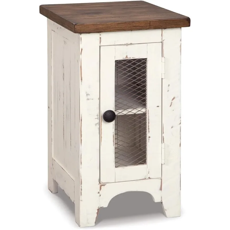 Стул, боковой столик с дверцей шкафа для хранения, белый и коричневый с состаренной отделкой