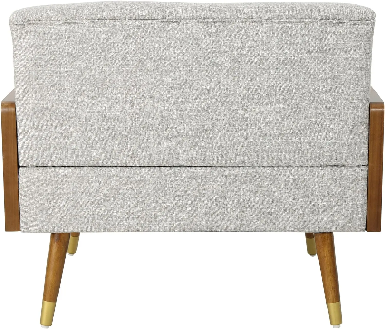 Стул клубный из современной ткани Greta Mid Century, бежевый, темный орех 30.5D x 37,75 W x 33H in
