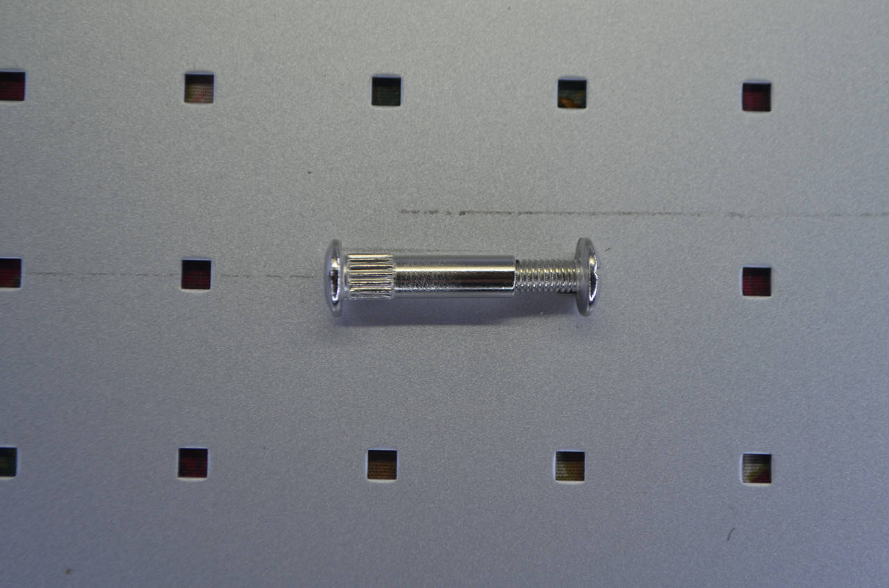 Данная стяжка предназначена для стягивания двух ДСП. То есть, для того чтобы секции не распадались, делается сквозное отверстие, вставляется стяжка и скручивается. Секции становятся монолитными, цельными. Стяжка хромированная и красиво смотрятся в боковой части шкафа. Диаметр 7 мм, максимально рассчитано под плиту толщиной 40 мм. Диаметр резьбы М6.