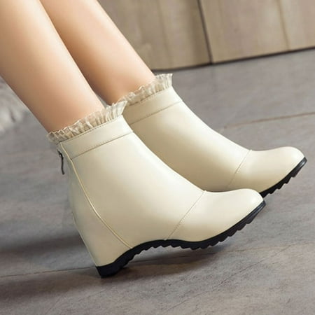 LnjYIGJ Women s Wedges Shoes Women s Height Increase Shoes Casual Fashion Solid Color Lace Wedge Heel Ankle Boots