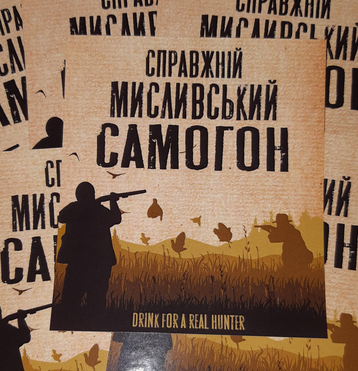 Етикетка наклейка жартівлива на пляшку домашнього "Мисливський самогон"