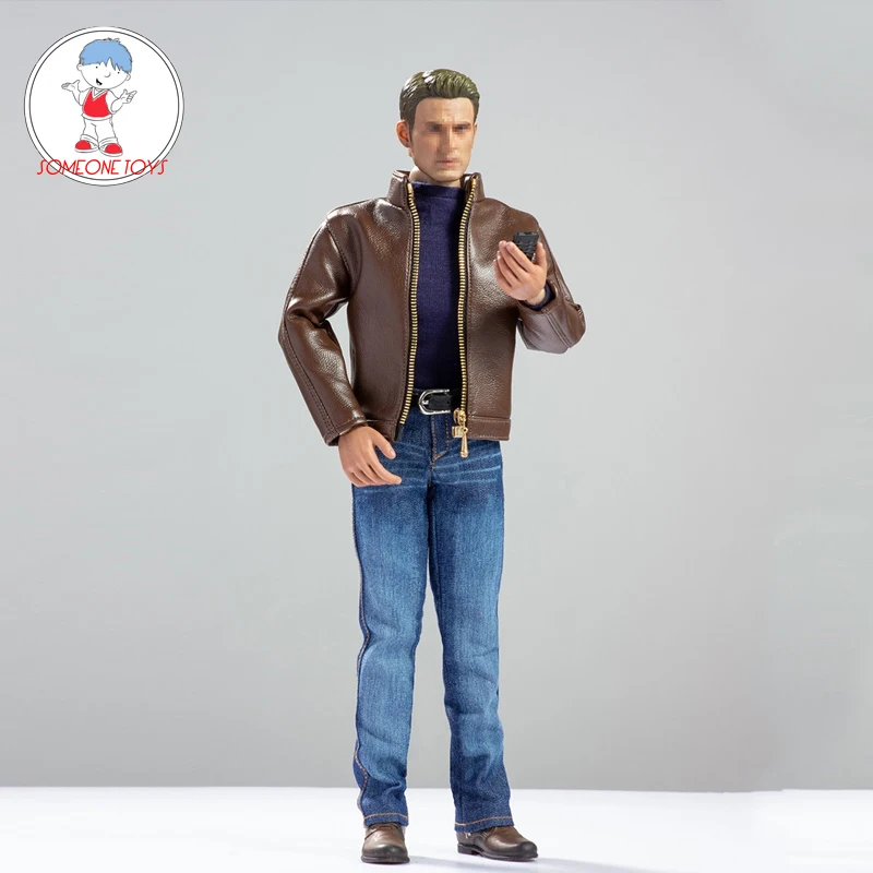 Toy Center CEN-M10 1/6 Blue Leather Coat Jeans Coffee Jacket Pants with Belt for 12 Inch Action Figure Model Body