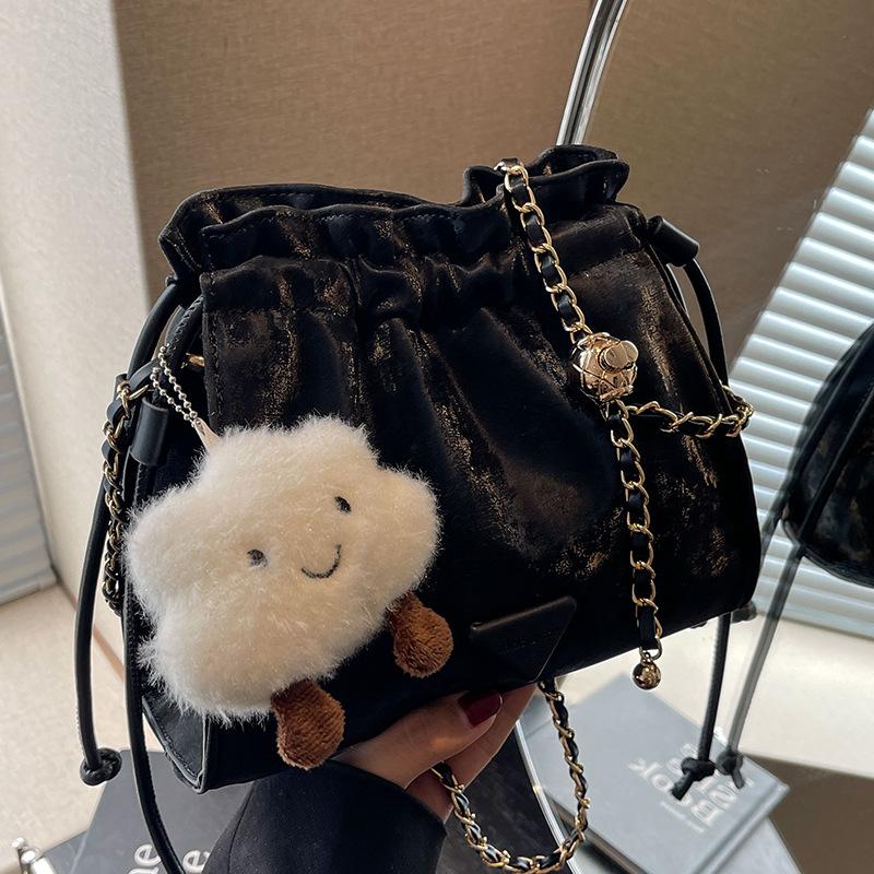 Сумка Корейская высококачественная универсальная сумка-ведро весна-лето 2024 новинка модная цепочка одно плечо сумка-мессенджер женская чёрный