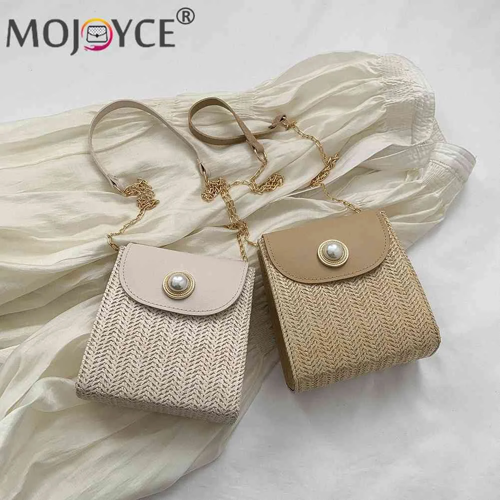 Сумка Хобо женская Соломенная, модный простой саквояж для покупок с жемчужным орнаментом, легкий Воздухопроницаемый чемоданчик для пляжно...