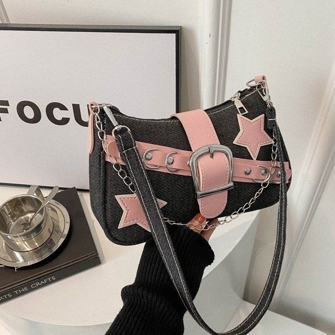 Сумка-багет Niche Design, розовая сумка через плечо, милая крутая сумка-подмышка с цепочкой, женская модная универсальная сумка чёрный