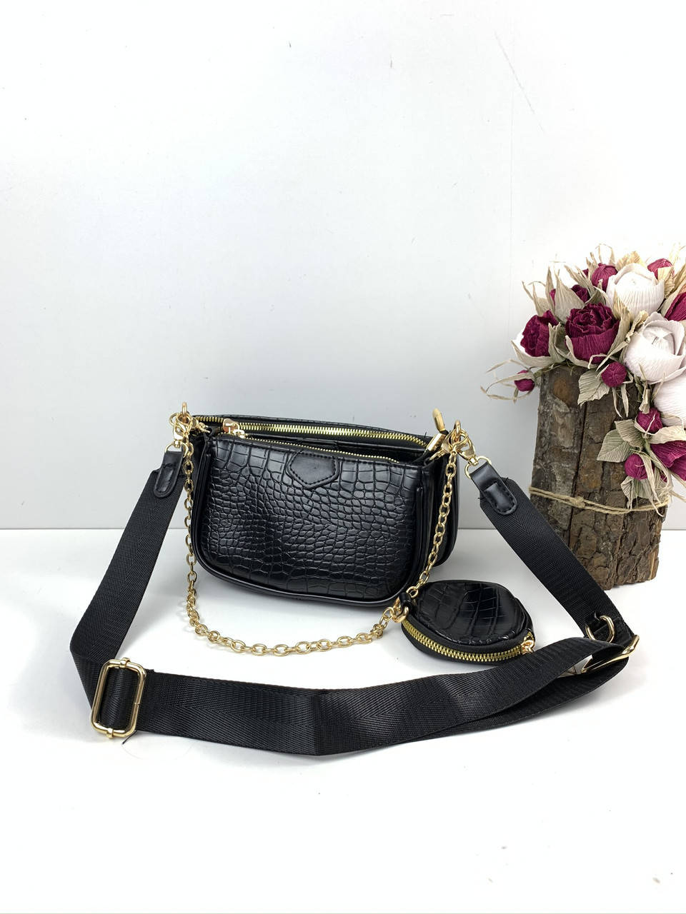 Сумка бананка комплект 3в1 крокодил / (1713) Черный