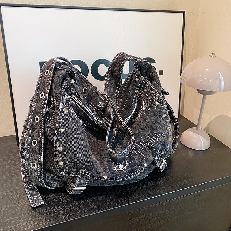 Сумка большой вместимости с вышивкой в стиле ретро Lazy Wind, которую можно стирать в воде, старые заклепки, крутые сумки через плечо