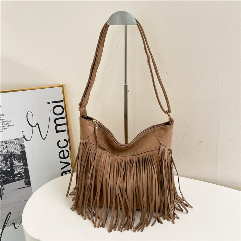 Сумка большой вместимости с кисточкой, новая женская сумка на осень и зиму, ретро, популярная женская сумка через плечо, простая сумка-мессенджер хаки