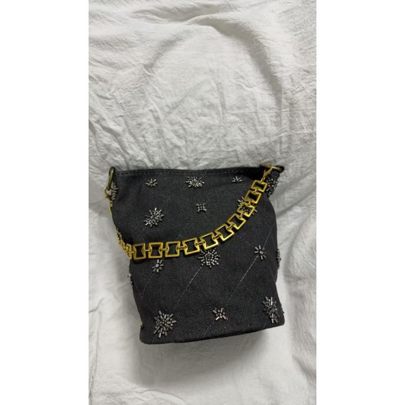 Сумка-ведро, Джинсовая сумка большой вместимости, Новая модная и универсальная сумка через плечо в китайском стиле чёрный