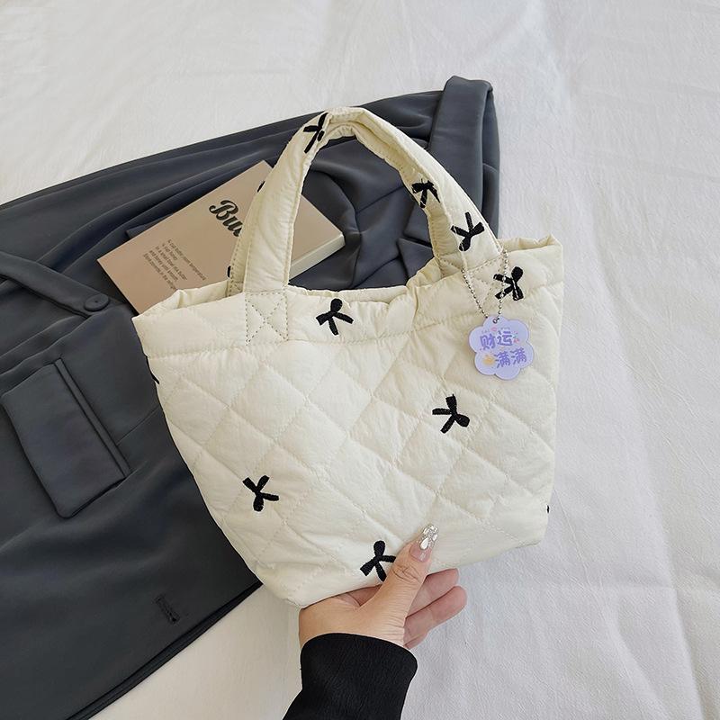 Сумка-ведро большого объема с бантом для женщин 2024 года, новая повседневная модная простая высококачественная портативная сумка-ведро для поездок на работу