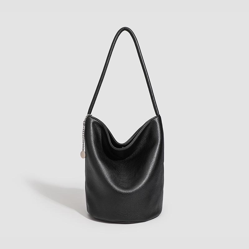 Сумка-ведро женская осенне-зимняя модная фактура ленивая сумка для поездок на работу одно плечо сумка через плечо чёрный