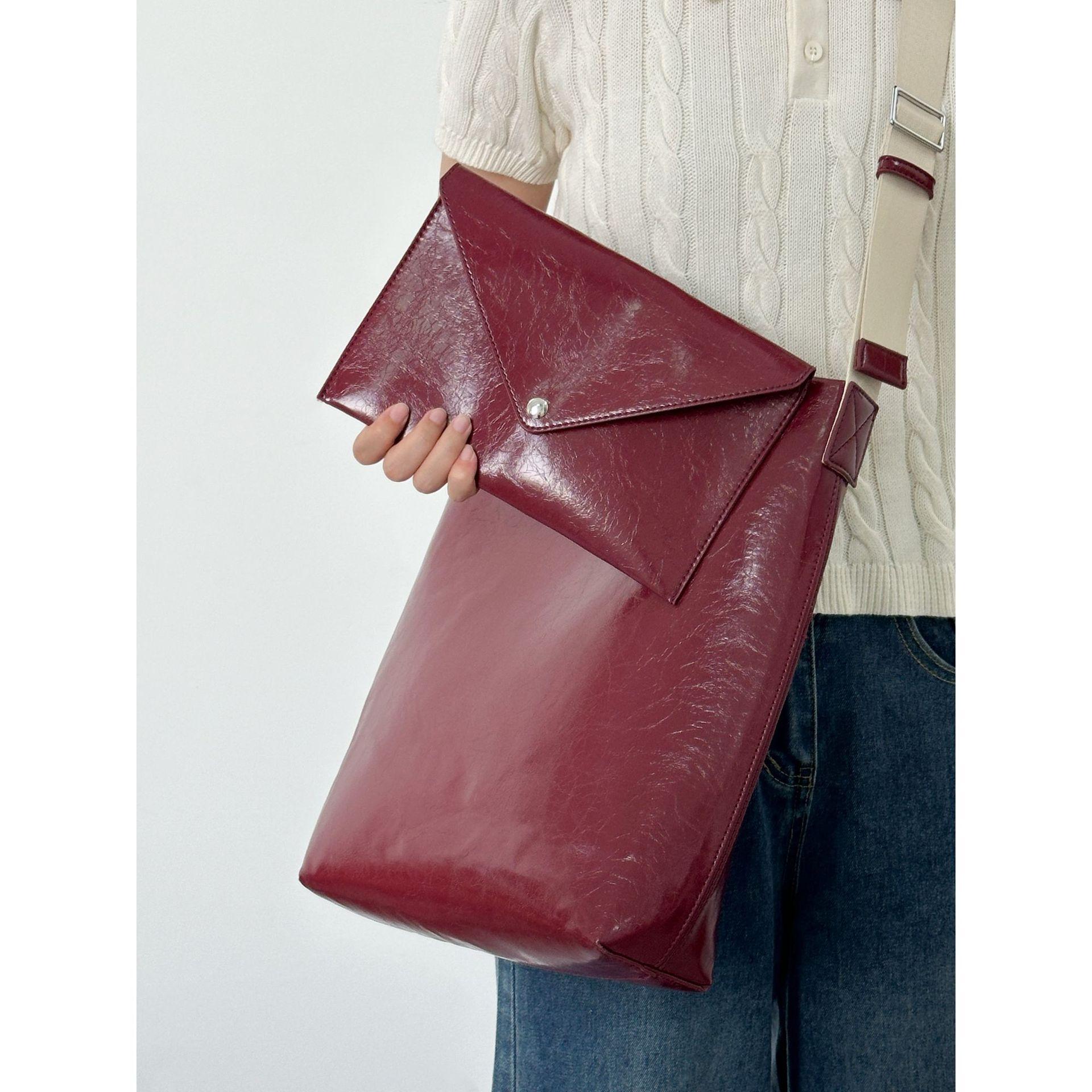 Сумка-ведро из высококачественной масляно-вощеной кожи для поездок на работу, женская осенне-зимняя сумка-тоут большого объема, бордовая сумка-мессенджер
