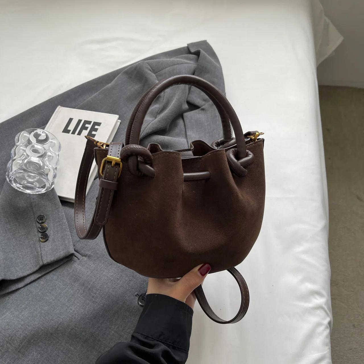 Сумка-ведро из замши премиум-класса для овощей и фруктов, новая сумка для детей и мам в иностранном стиле, плиссированная сумка через плечо