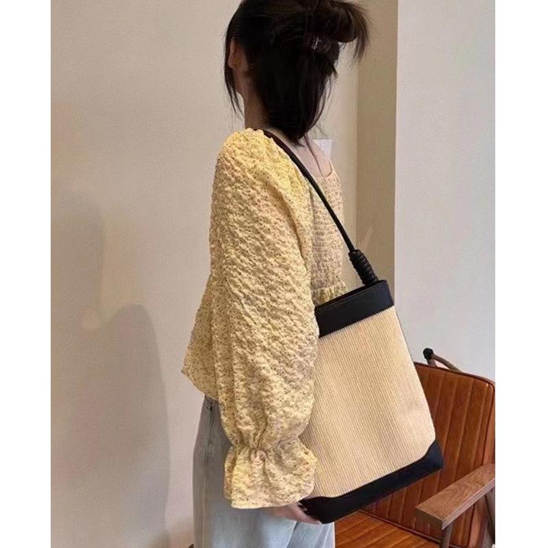 Сумка-ведро, новая женская пляжная сумка из травяной ткани, большая сумка Ins Wind, сумка через плечо большой вместимости