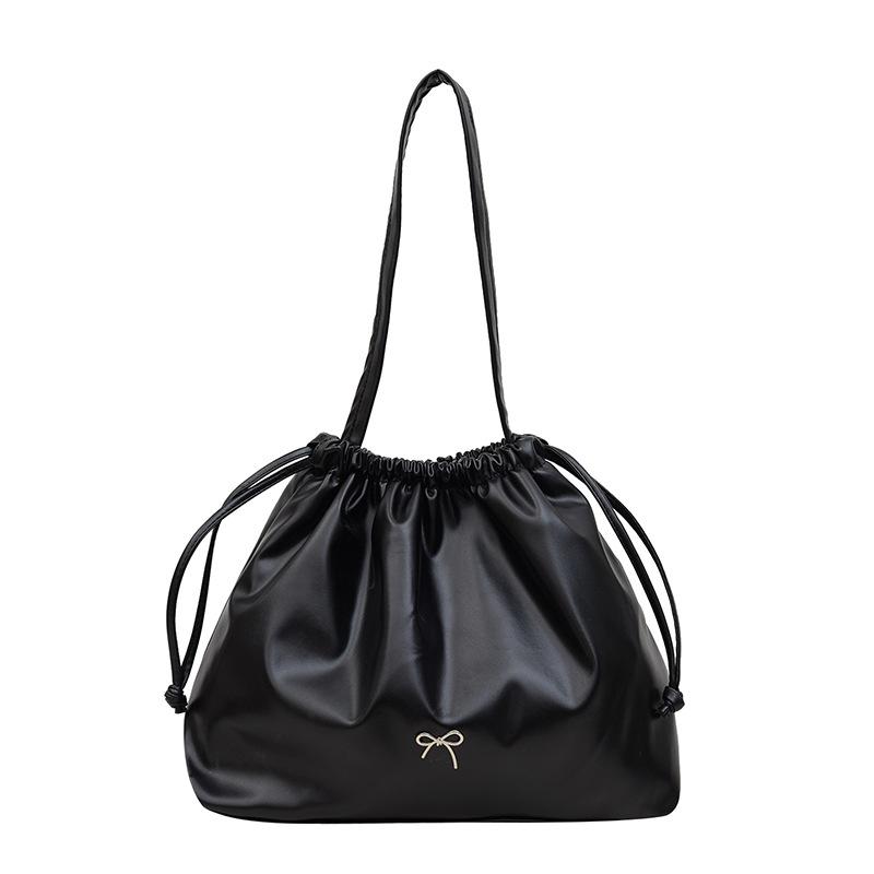 Сумка-ведро с завязками и складками, женская, 2024 года, модная, новая, вместительная, осенняя, повседневная, универсальная сумка через плечо чёрный