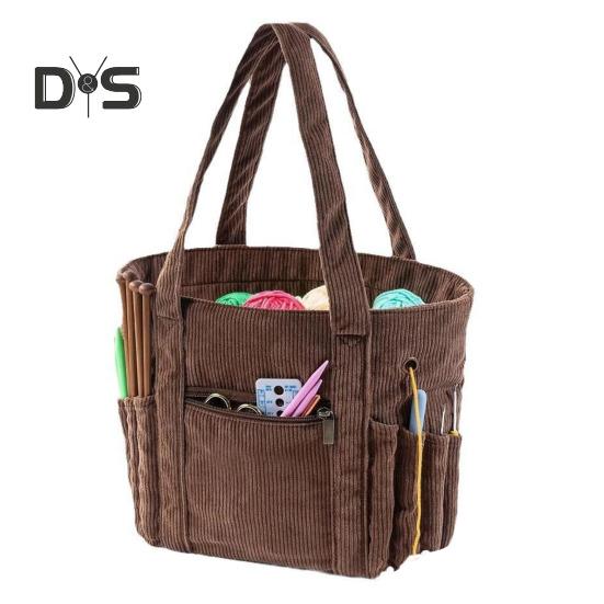 Сумка для вязания, органайзер для хранения пряжи с застежкой-молнией, большая вместимость, многоцелевая портативная сумка для вязания, органайзер для крючков коричневый