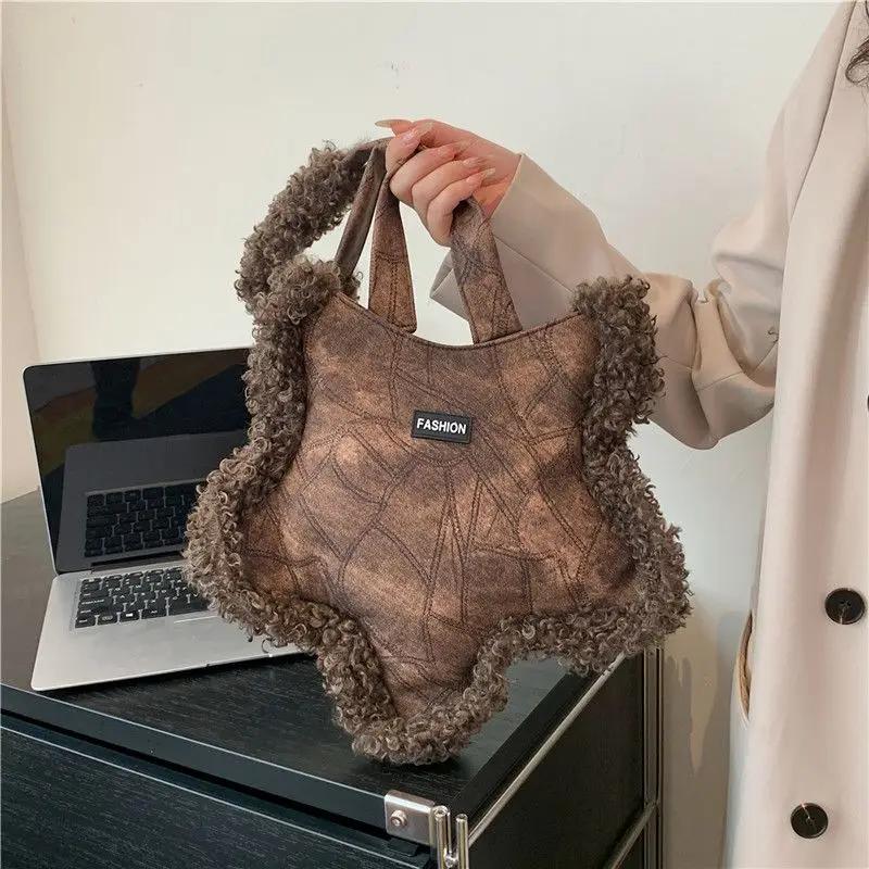 Сумка для девочек в форме звезды, пушистая, повседневная, на молнии, мягкая, модная, винтажная, вместительная, сумка через плечо, кошельки и сумки, универсальные