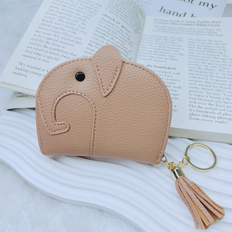 Сумка для карт из искусственной кожи с рисунком личи и головой слона, сумка для денег, женский кошелек для монет, брелок для ключей, сумки для хранения на молнии
