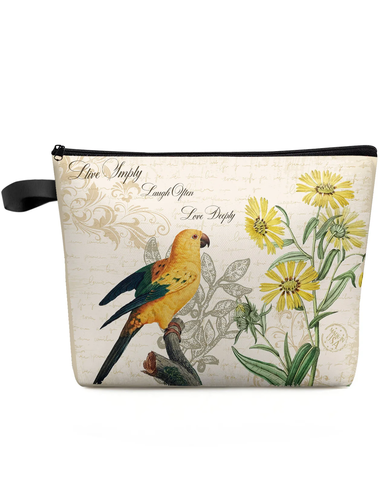 Сумка для косметики в стиле ретро с желтым попугаем и подсолнухом, необходимое для путешествий, женская косметичка, органайзер для унитаза, фотокарандаш для хранения