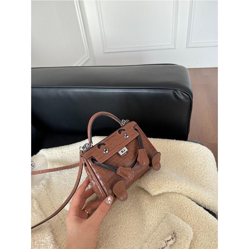 Сумка для куклы тысячелетия в том же стиле для малышей, симпатичная сумка через плечо в стиле ретро, пародийная сумка с крокодиловым узором, женская мини-сумка для мусора 16x6x13cm коричневый
