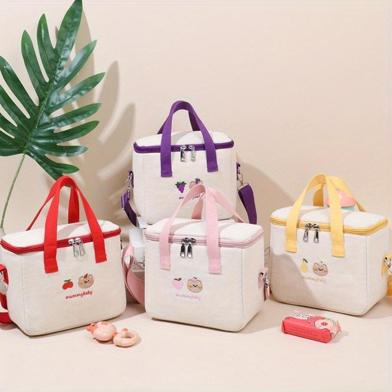 Сумка для ланча Медведь Изолированная Холщовая Сумка-холодильник Сумка-тоут Алюминиевая фольга Термобокс для еды Семейная Школьная Пикник Контейнер для обеда Сумка для бенто розовый