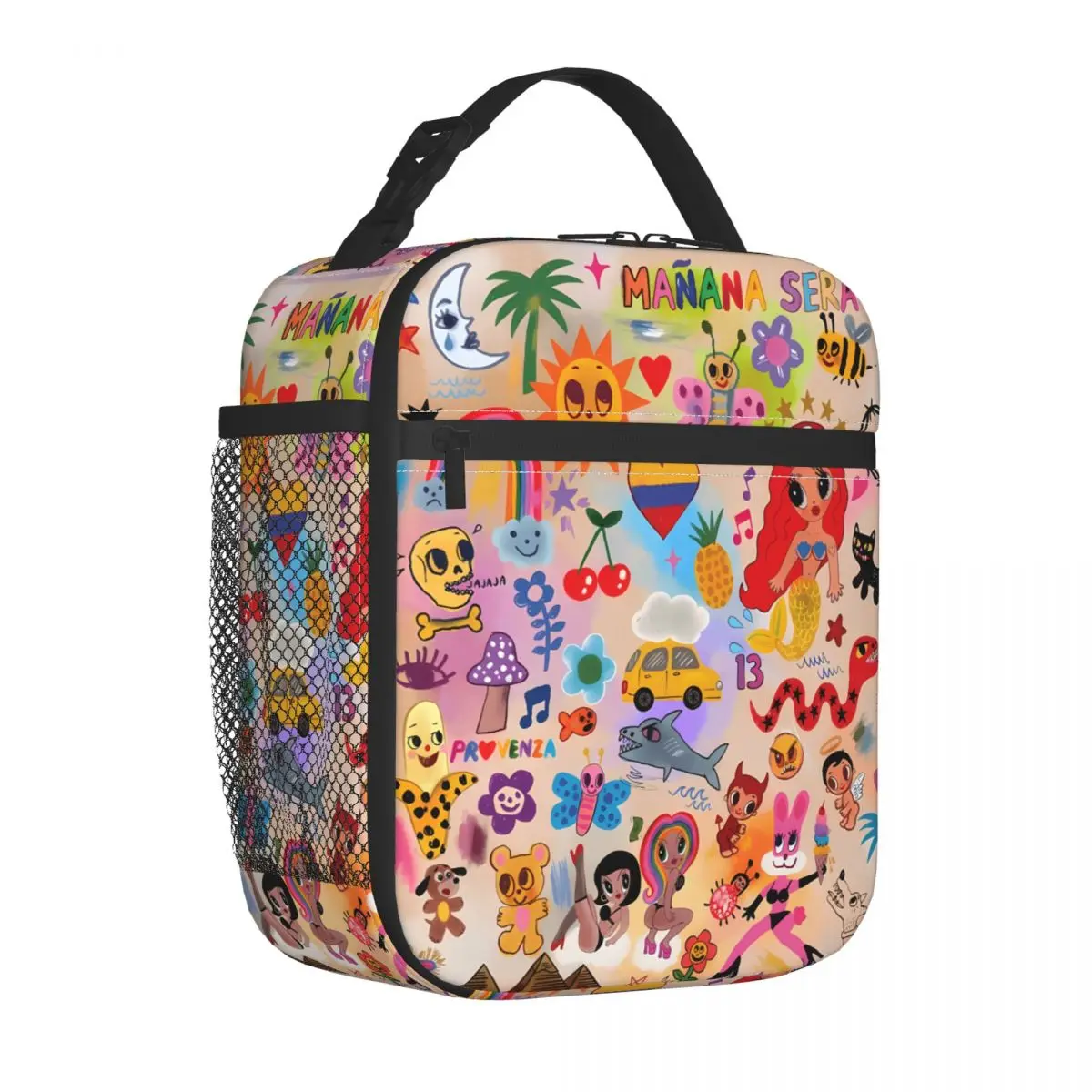Сумка для ланча Karol G Manana, переносной Ланч-бокс на молнии для девочек Sera BonitoI 3D, школьная сумка-холодильник, ретро водонепроницаемые сумки-тоут для еды