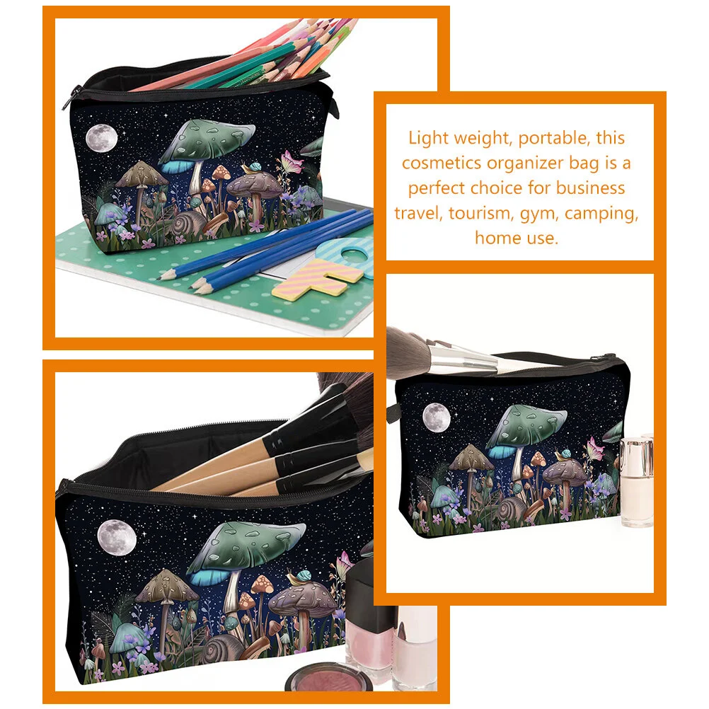 Сумка для макияжа с принтом грибов и молнией, Портативная сумка для макияжа для путешествий