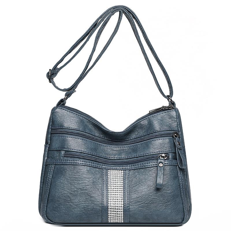 Сумка для мам среднего и пожилого возраста, женская сумка через плечо из мягкой кожи, винтажная сумка через плечо с инкрустацией бриллиантами синий