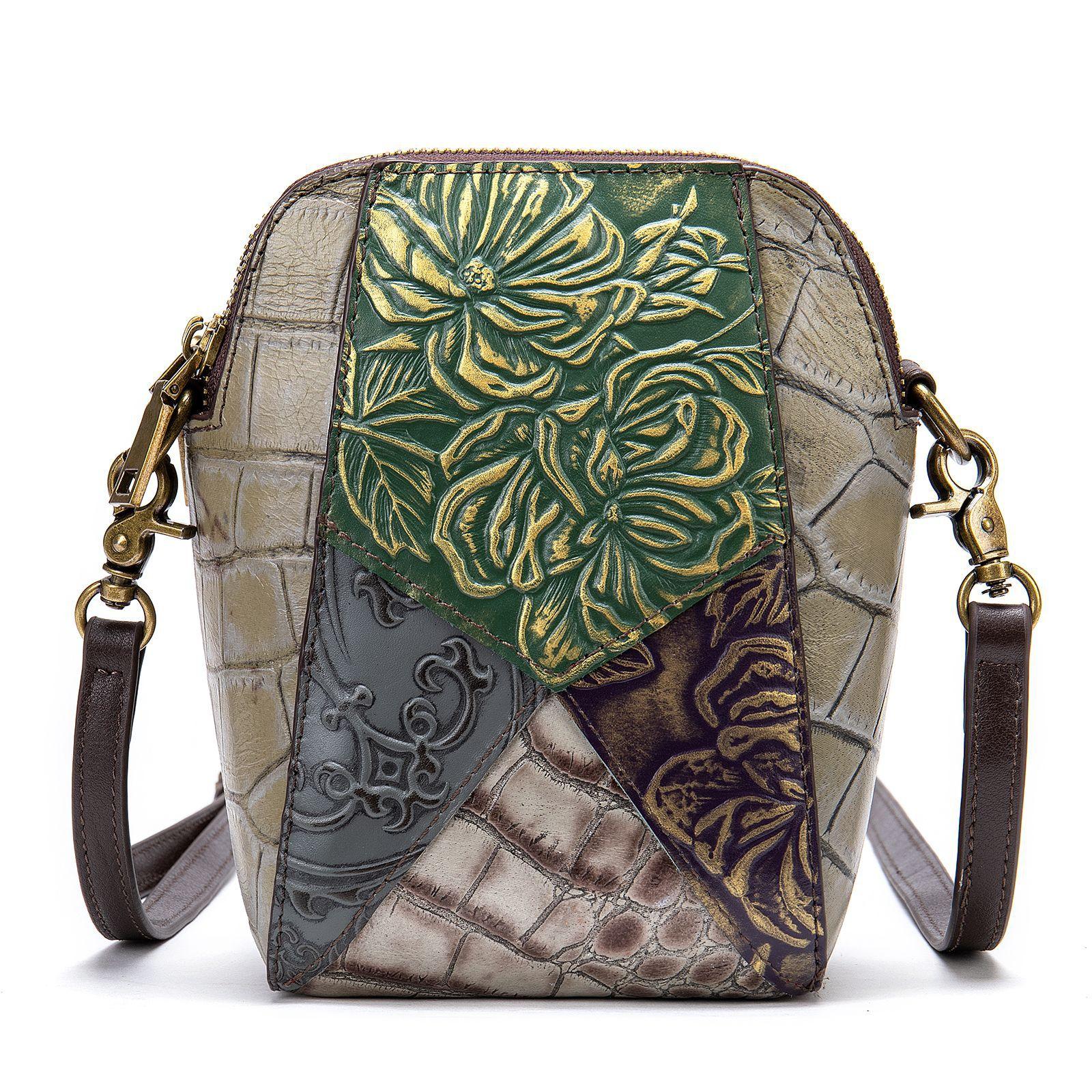 Сумка для мобильного телефона в этническом стиле в стиле ретро, мини-сумка-косметичка из коровьей кожи, женская сумка через плечо из натуральной кожи