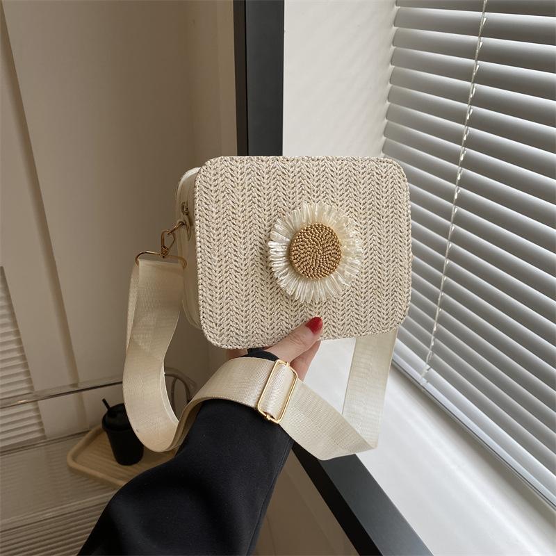 Сумка для отпуска с соломенной плетеной цветочной отделкой, новый стиль, пляжная модная сумка через плечо, маленькая, свежая и модная сумка
