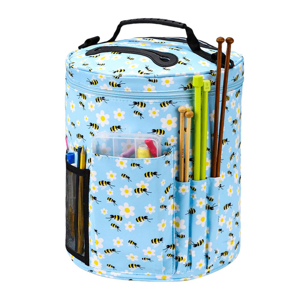 Сумка для хранения пряжи из ткани Оксфорд, сумка для вязания с узором «Роза» с карманами, держатель пряжи с ручкой для крючков и спиц ярко-розовый