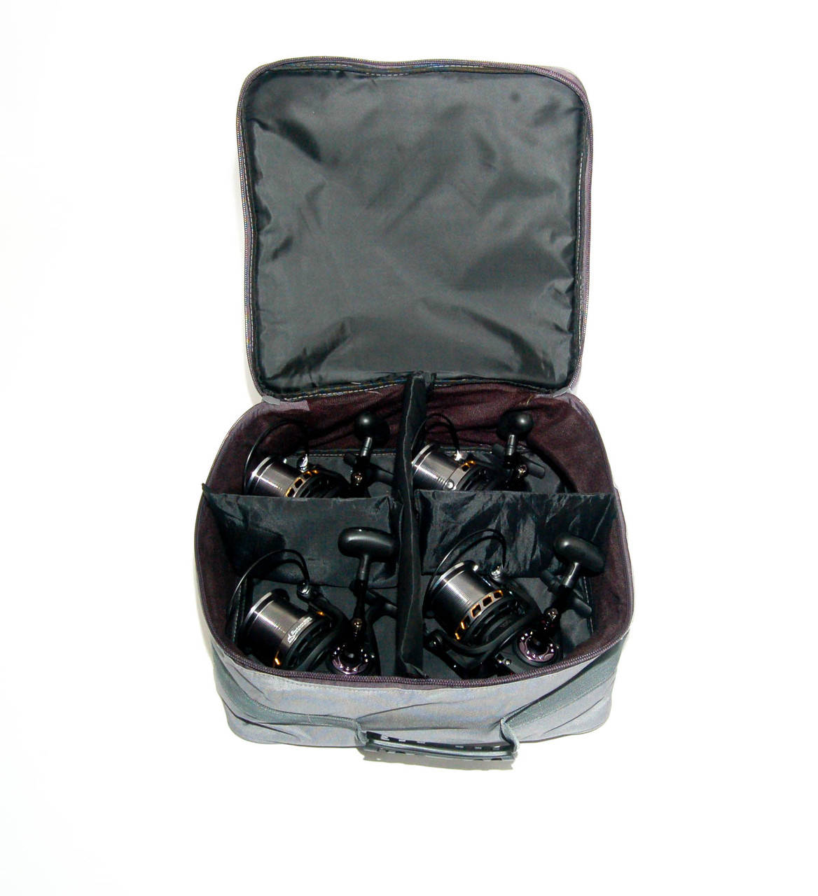 Компанія Feima надала модель сумки для транспортування чотирьох котушок. Складається з чотирьох відділів в яких можна зберігати котушки розміром до 12 000. Перегородки знімні на липучках. Переваги даної сумки: