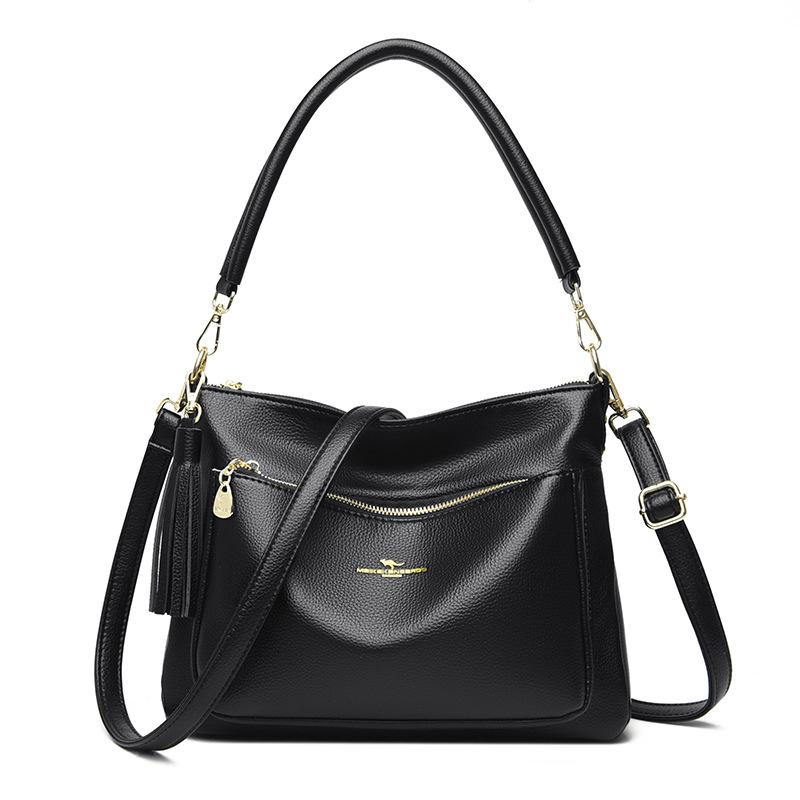 Сумка женская большая вместительная сумка через плечо для мам среднего возраста из мягкой кожи модная сумка через плечо чёрный